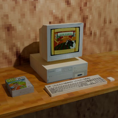 Cuando me tocó en suerte jugar al SimFarm me emocioné bastante. No solo porque había logrado evitar todos esos horrendos simuladores de vuelo que tengo en la lista, si no porque los juegos de Maxis habían formado parte privilegiada en las bibliotecas de todos los video jugadores de aquella generación. Recuerdo pasar tardes enteras viendo1 ciudades enteras en del SimCity en las casas de amigos para luego algún día2 llevar varios disquetes y poder llevarlo a casa. Luego llegó el famoso Sims, un fenómeno que la rompió toda allá por los 2000 y sigue aun hoy3 entre algunos influencers y raritos. Yo no tenía el Sim Farm, mis amigos tampoco, pero todos esos títulos de Maxis estaban en el imaginario popular4 y el logo de Maxis es garantía de confianza. ¿Podrá vivir a la expectativa?